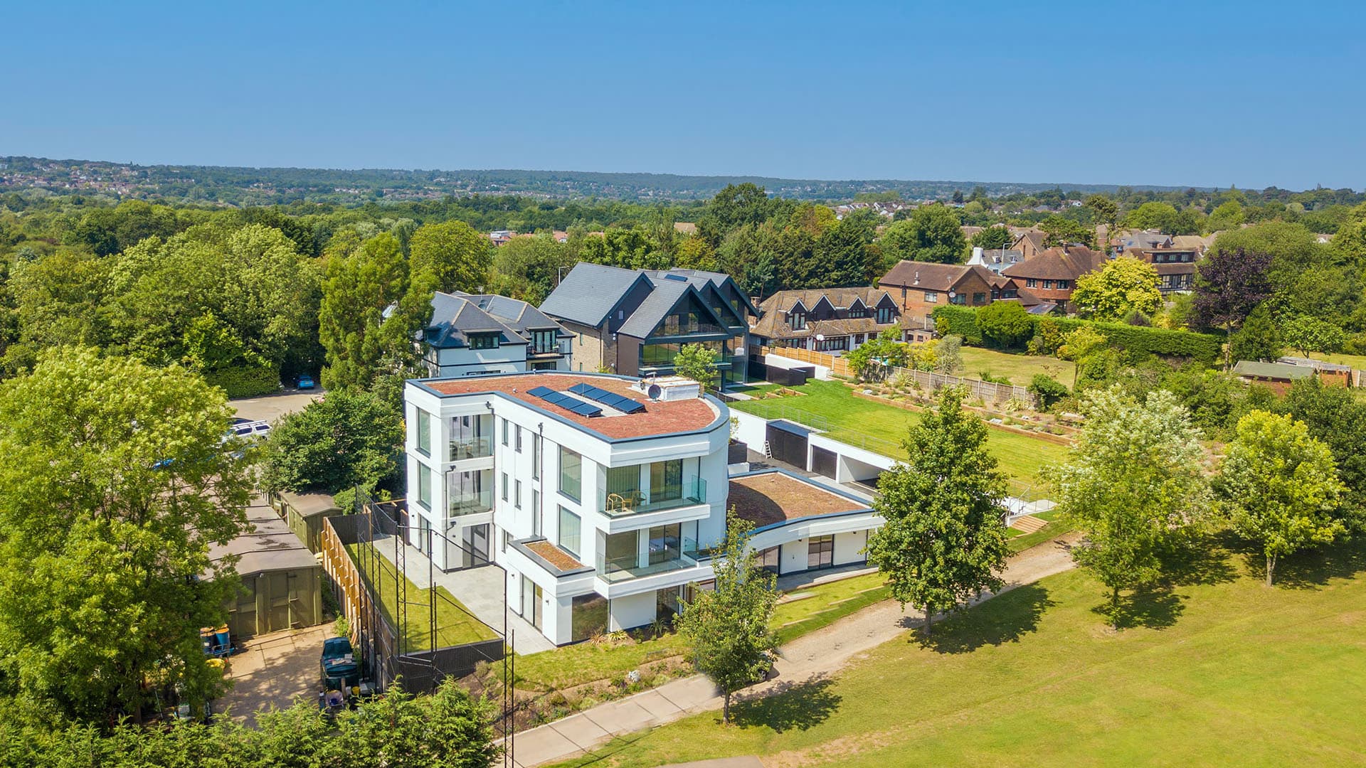 Montgomerie Lodge is a state-of-the-art development located on the edge of Chigwell Golf Course. Designed over three floors with a lift to each floor and comprising of four two and three bedroom luxury open – plan apartments all with outdoor space and beautiful panoramic golf course views.