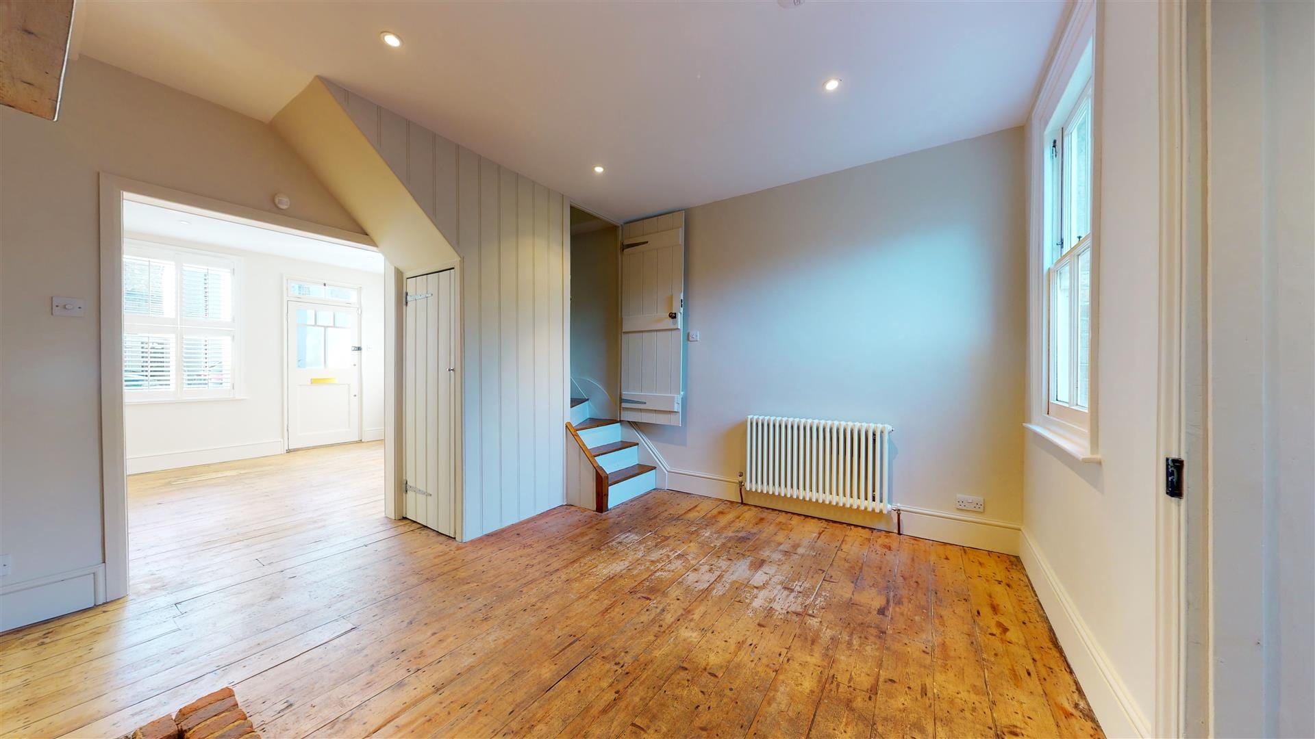 The accommodation is arranged over two floors with the ground floor comprising of a spacious living room with period fireplace and solid wood flooring and a further reception room which has beautiful exposed brick work and a wood burning stove. Towards the rear of the property is a well-proportioned kitchen with inbuilt appliances in addition to a double Velux sky light. On this floor there is also a good-sized family bathroom with a ceramic roll top bath.