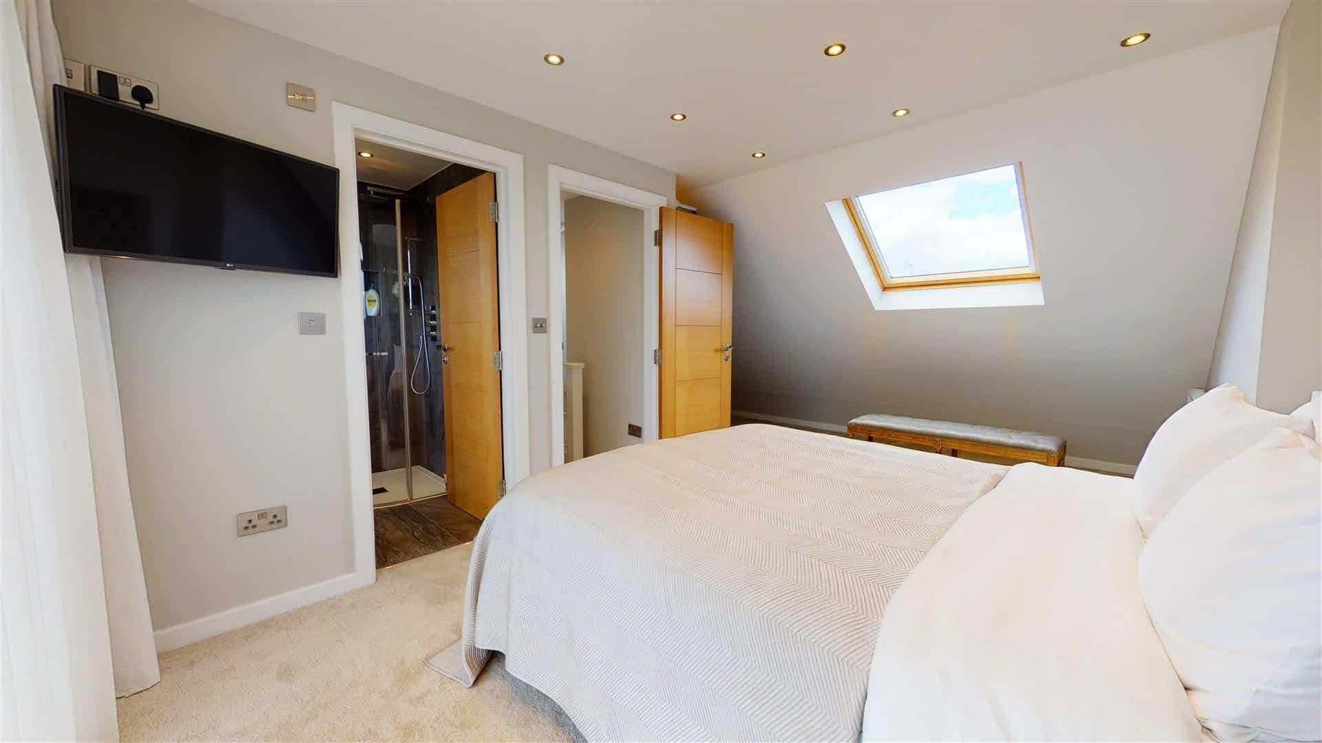 The first floor offers a large contemporary family bathroom, double bedroom with bespoke built-in wardrobes, further bedroom with integrated desk and a further bedroom/study. The 2nd floor offers a spacious master bedroom with sliding doors and beautiful shower en suite.